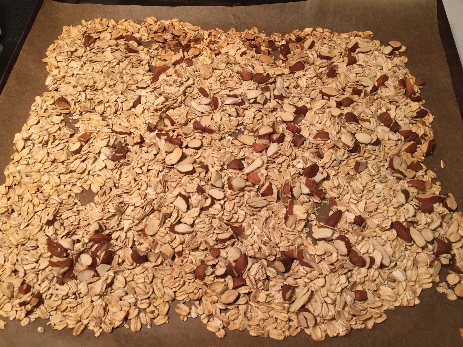 - Toast your oats and almonds in a 350 degree oven for 13-15 minutes or until slightly golden brown.
